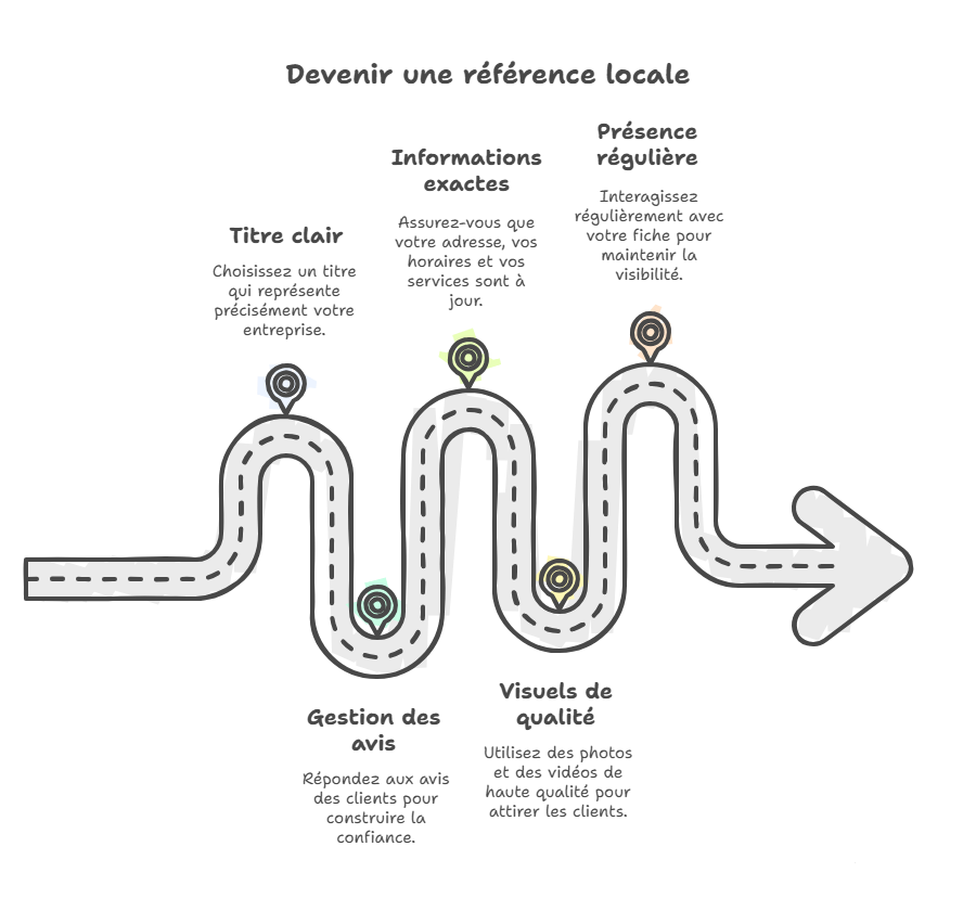• Les avis sont un levier puissant : leur quantité, qualité et actualité influencent votre classement local.